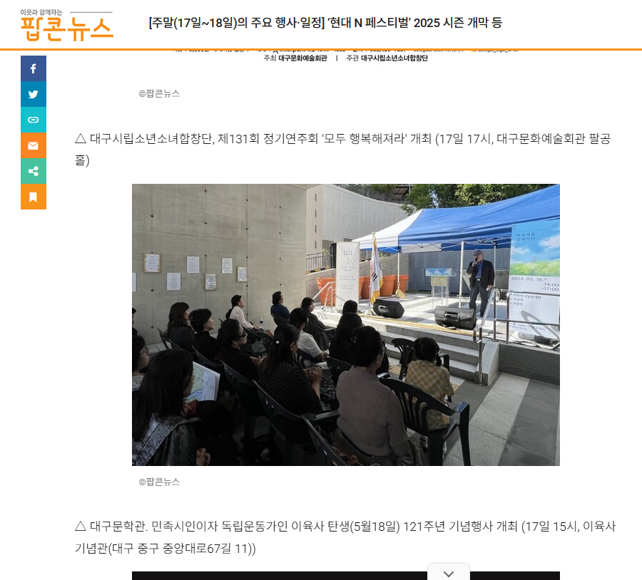 | [팝콘뉴스][주말(17일~18일)의 주요 행사·일정] ‘현대 N 페스티벌’ 2025 시즌 개막 등 |