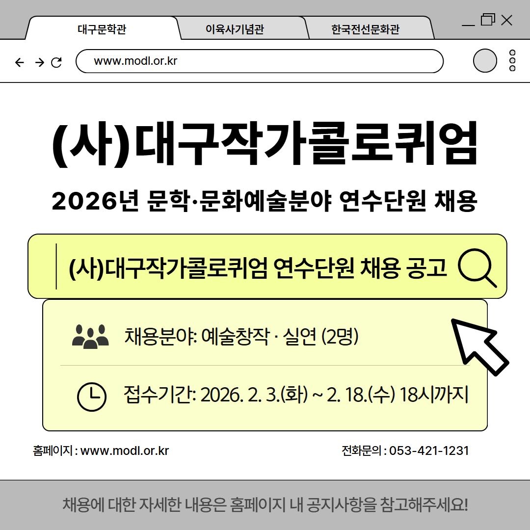 [공고] 대구광역시 문학진흥시설 직원 채용 서류전형 합격자 공고