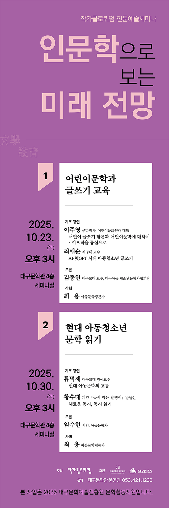 주최:작가콜로퀴엄·대구문학관 / 후원: 대구문화예술진흥원·대구광역시