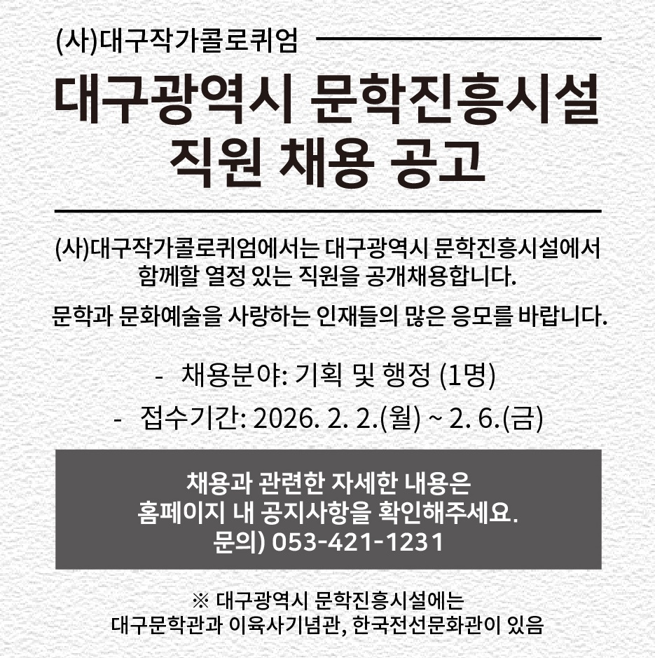 [공고] 대구광역시 문학진흥시설 직원 채용 공고