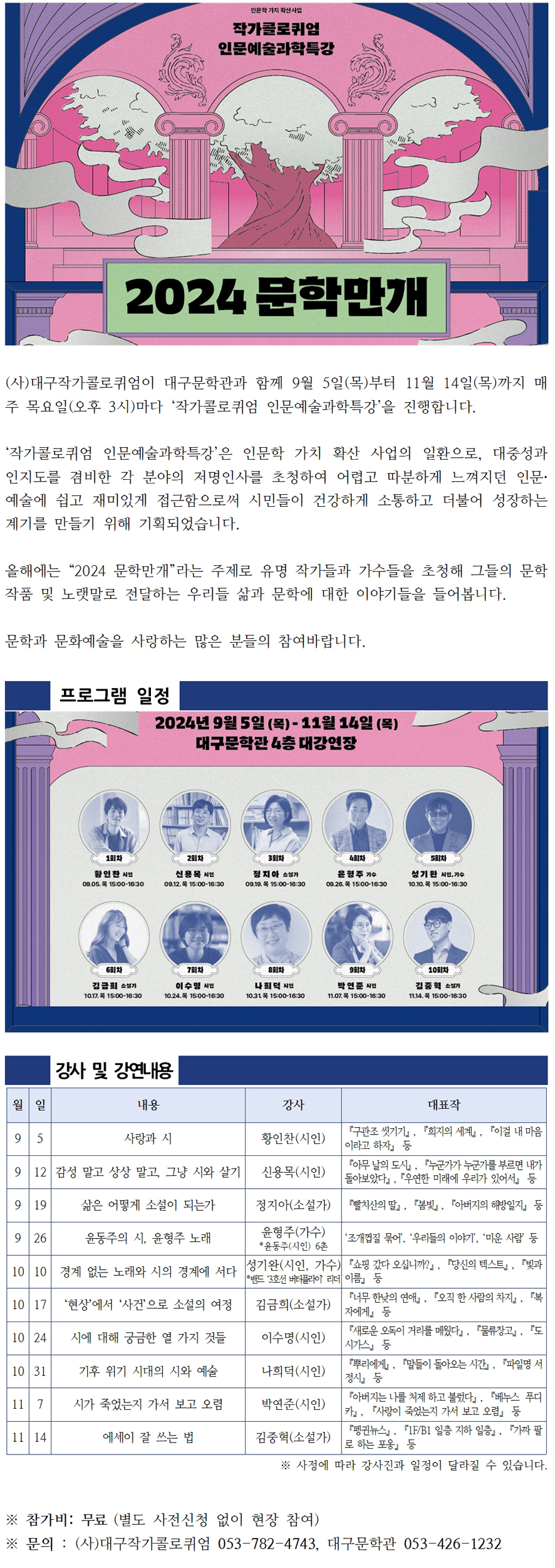 작가콜로퀴엄 인문예술과학 특강